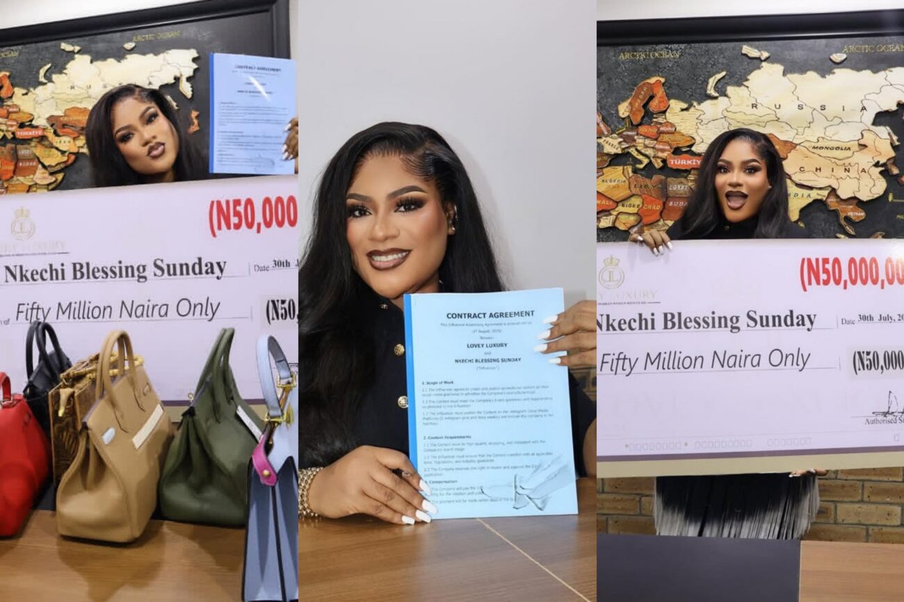 Nollywood actress Nkechi Blessing Sunday is celebrating a massive milestone after landing a ₦50 million endorsement deal with luxury brand Lovey Luxury.