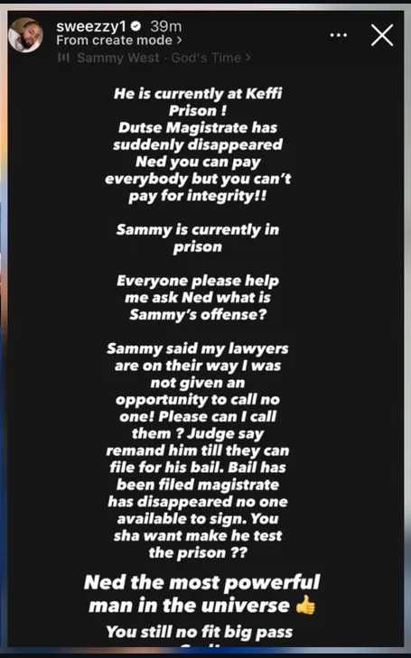 “Dutse Magistrate has suddenly disappeared. Ned, you can pay everybody, but you can’t pay for integrity! Sammy is currently in prison. Everyone, please help me ask Ned what Sammy’s offense is. Sammy said his lawyers are on their way, but he was not allowed to contact anyone. The judge ordered he be remanded until bail could be filed, but the magistrate disappeared, and no one was available to sign. You still want him to test the prison? Ned, the most powerful man in the universe, you still can’t outdo integrity.”